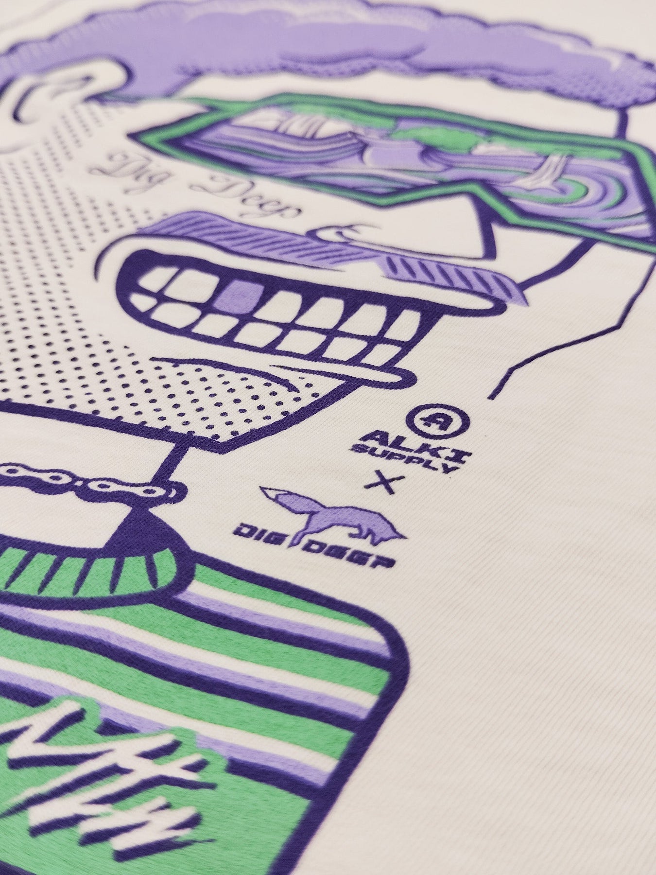 Presenting the Galbraith Mountain Mullet mountain bike shirt in collaboration with Dig Deep Mountain Bike Tours. Small hit on the front, big hit on the back. Inspired by the Mullet trail on Galbraith and the legends who fully send.
