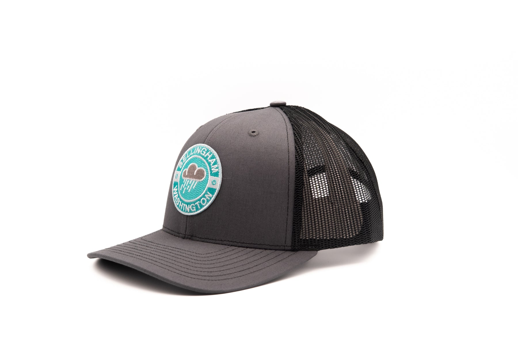 It's true... sometimes it rains in Bellingham. Keep the rain out of your face with this retro inspired Bellingham Trucker hat!