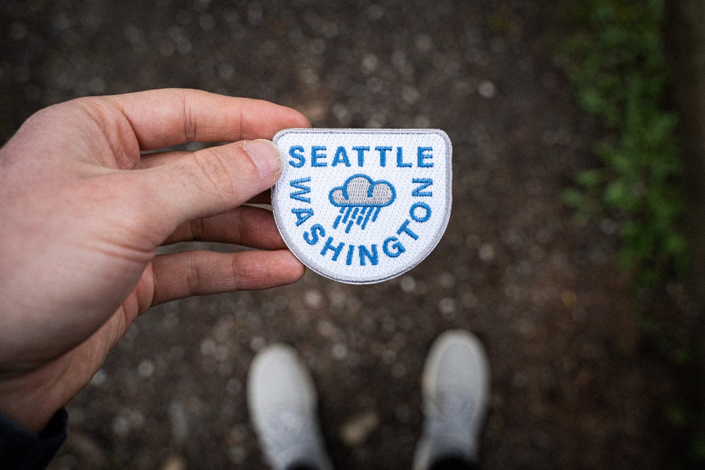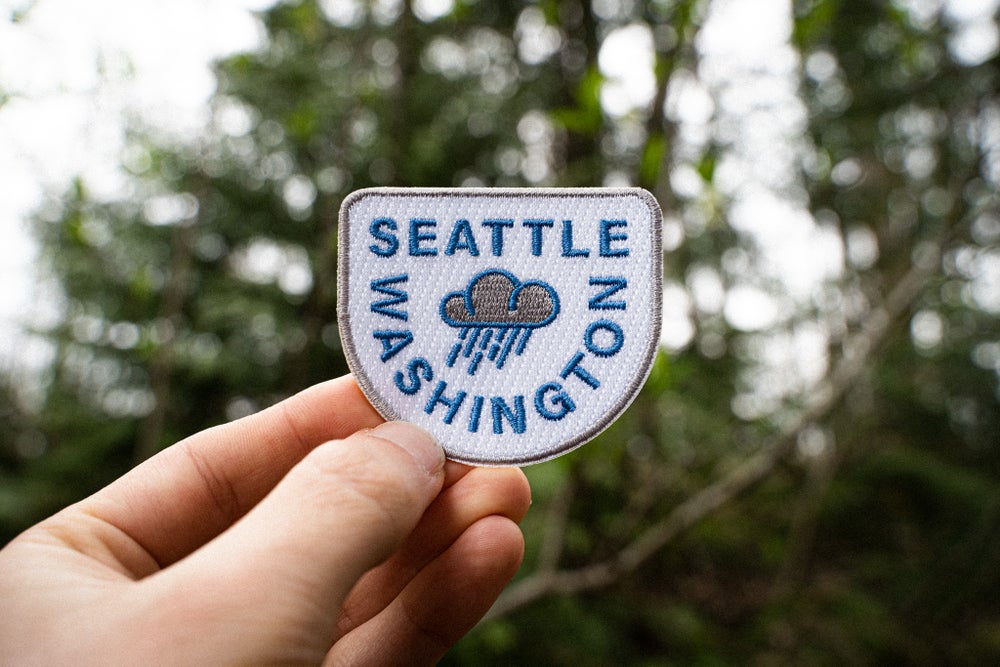 It's true... sometimes it rains in Seattle. Celebrate those sleepy drizzles with this here Seattle embroidered patch!